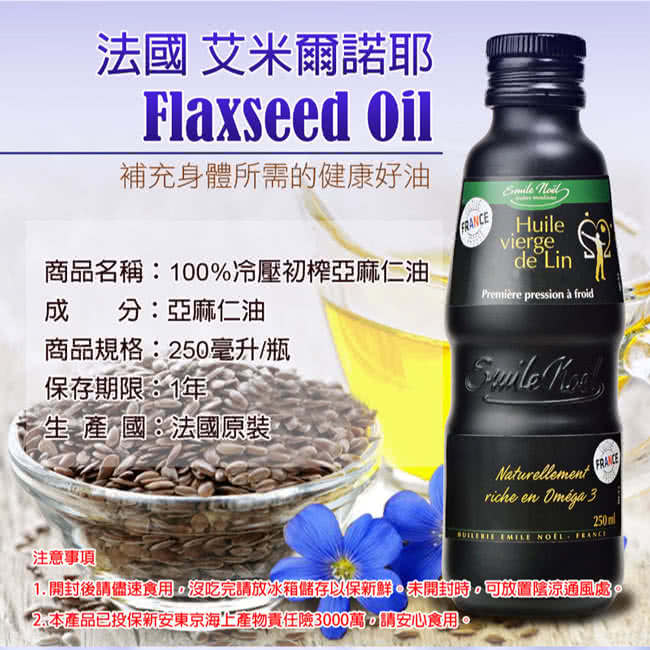 | 【艾米爾諾耶】冷壓初榨亞麻仁油3入組(250ml/瓶)-momo購物網 有效日期2018/11/30來自法國百年油磨莊園豐富OMEGA3 素食營養首選 | ||||||||